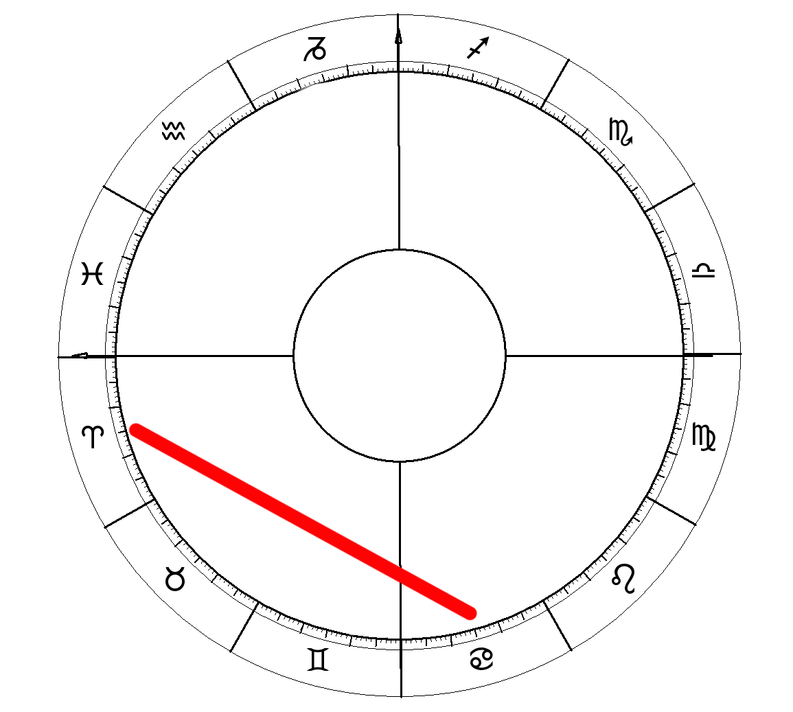 양자리-게자리 주인공은 드라마틱한 감각을 보여주는 재능을 선물 받았다. 그리고 자신의 감정을 강력하게 투영할 수 있다. 주인공은 능력 있는 대중 연설가, 예능인, 새로운 아이디어와 삶의 방식의 본보기가 될 수 있다. 주인공의 본능은 열렬하고 욕망은 격렬하고 강제적이다. 양자리-게자리 사각을 통해 화성은 주인공을 일련의 충동적인 것들에 연결시켜 부추기고 귀찮게 하기 때문에 스스로를 조심하게 만들 수 있다. 무슨 일이 일어났는지 인지하기 전에 느낌을 통해 감지하게 되고 옛 것을 근절하고 모든 공약과 의무에 따라 새로운 행동 라인을 구축하는 방법을 발견할 수 있다.