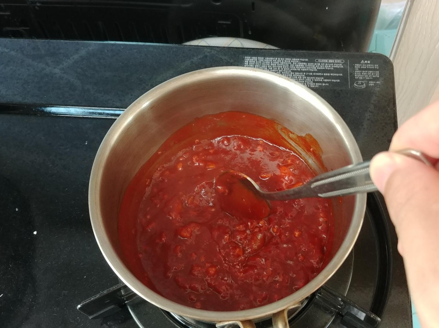 살짝 끓여진 소스를